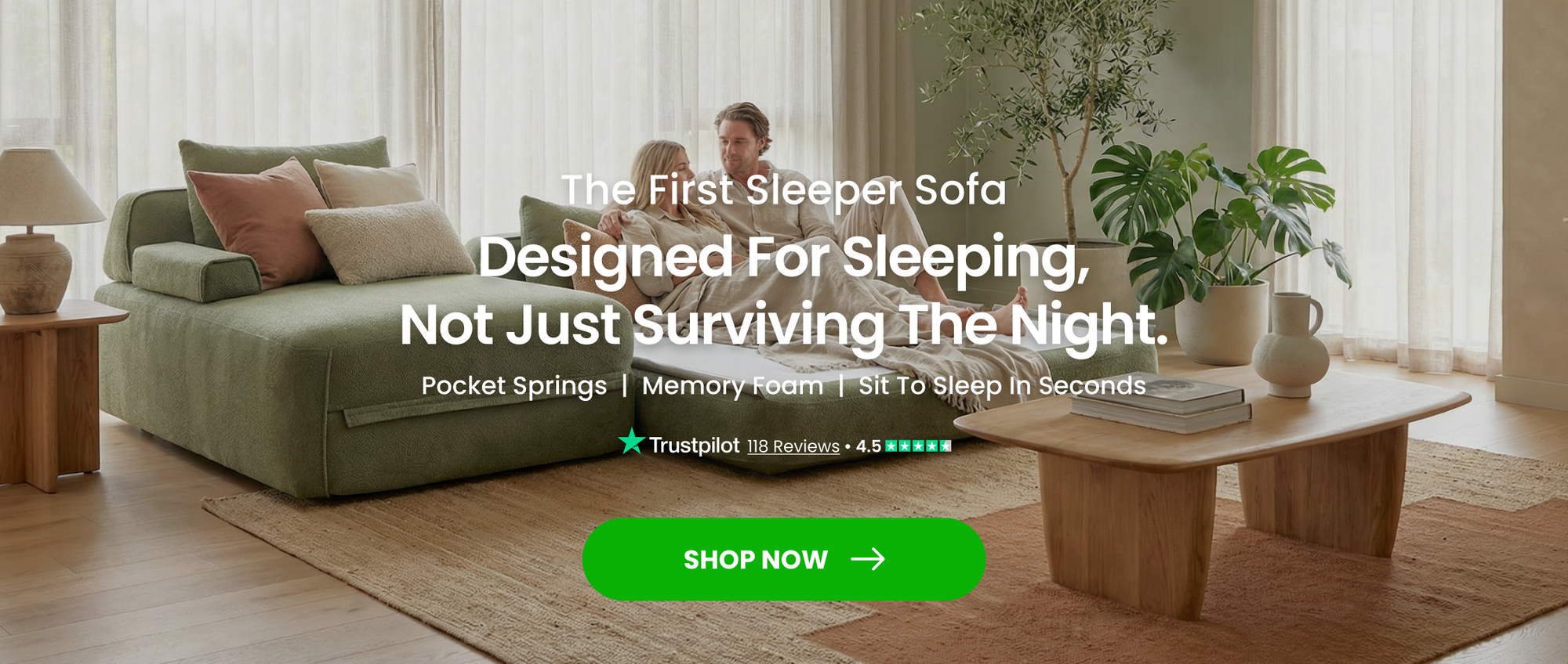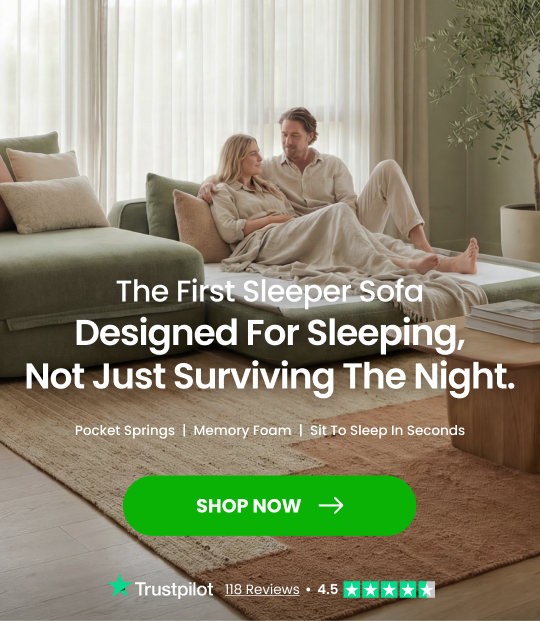 Built with memory foam + pocket springs—sits like a sofa, sleeps like a bed.